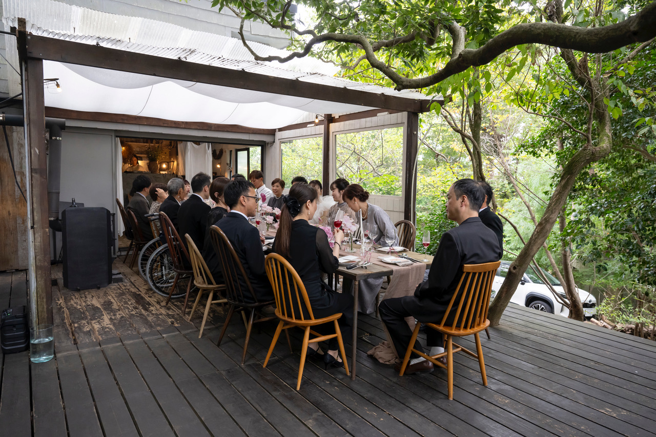 披露宴はテラスにも席を延長して