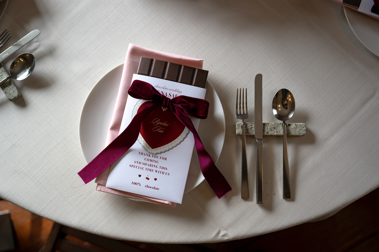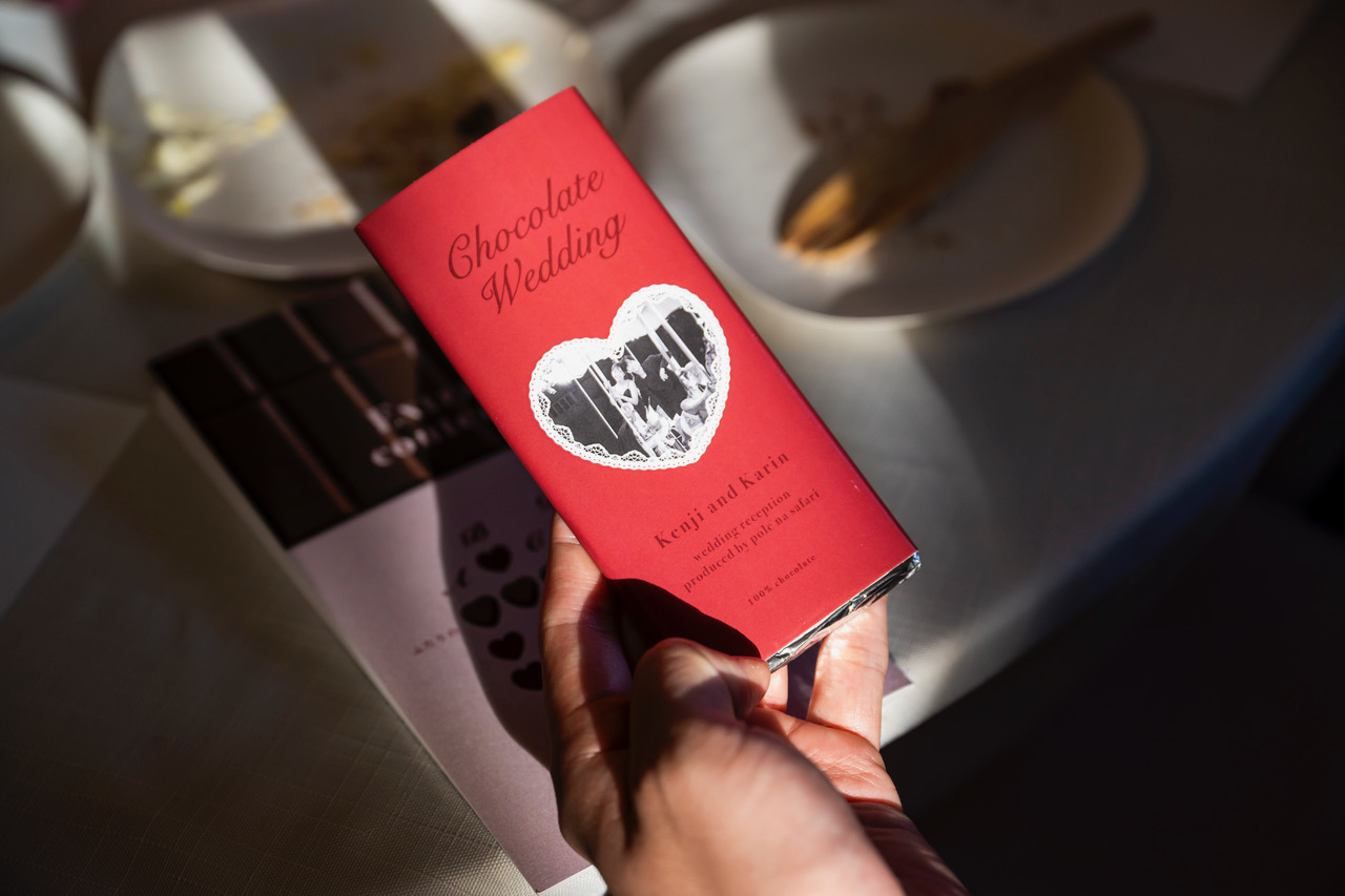 ラストのシーンで新郎新婦がみんなに配った板チョコと同じチョコを開けて…
